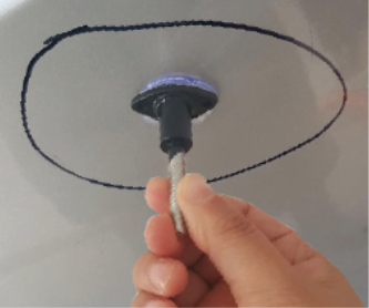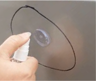 Izmantojot tīru audeklu, notīriet remontējamo virsmu ar „Release Agent“ šķidrumu. Līmi uzklājiet uz remontējamā ielenkuma vai buktes centra. Izvēlieties piemērotu uzgali pēc remontējamās buktes lieluma un piespiediet to pie līmes. Uzgali spēcīgi turiet piespiestu 10 sekundes.