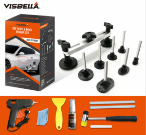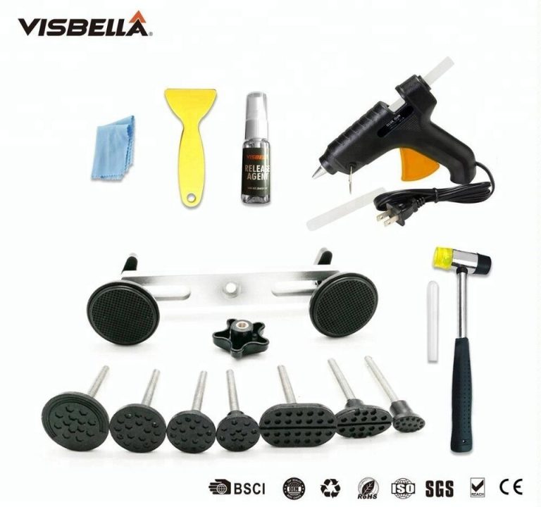 7 dažādu diametru uzgaļu komplekts, piemērots nelielu bukšu un ielenkumu līdzināšanai no virsbūves. Komplekts ir piemērots parastam lietotājam defektu likvidēšanai, nesabojājot virsbūves krāsu. Izmantojams rodoties automašīnas virsbūves defektiem, izņemot malām un stūriem. BRĪDINĀJUMS: NEIZMANTOJIET pārkrāsotu vai špaktelētu virsmu līdzināšanai.